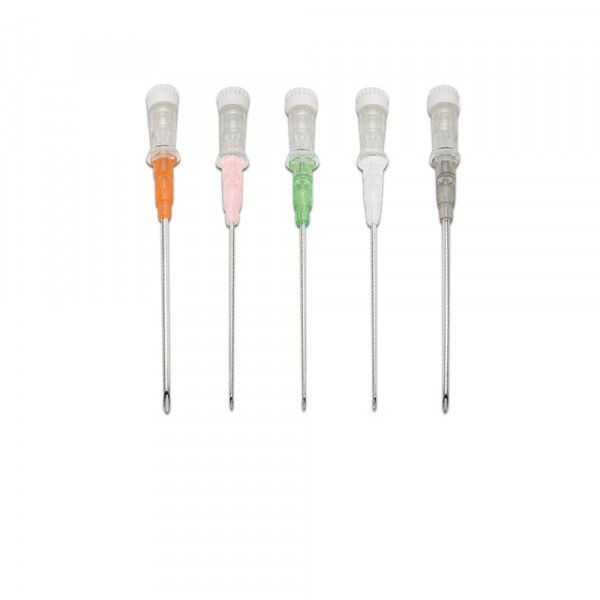 Aghi cannula sterili, marchiati CE. L'ago è composto da una tripla affilatura, il catetere è leggermente lubrificato per facilitarne l'inserimento.