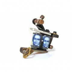 Questa tattoo machine della casa europea Cyber Tattoo Factory, fa parte di una serie premium. È una macchina qualitativamente perfetta, e si adatta a tutti i tipi di aghi. Il si presenta con linee semplici ed eleganti, ed è proprio questo che rende questa macchina piacevole alla vista e per il lavoro. Il telaio è intagliato da un unico pezzo di ottone. La bobbina è composta da 10 strati sovrapposti e la vite è in argento, per un migliore contatto. Il voltaggio è variabile tra 4 - 10V per adattarsi perfettamente al tipo ed alla configurazione dell'ago.