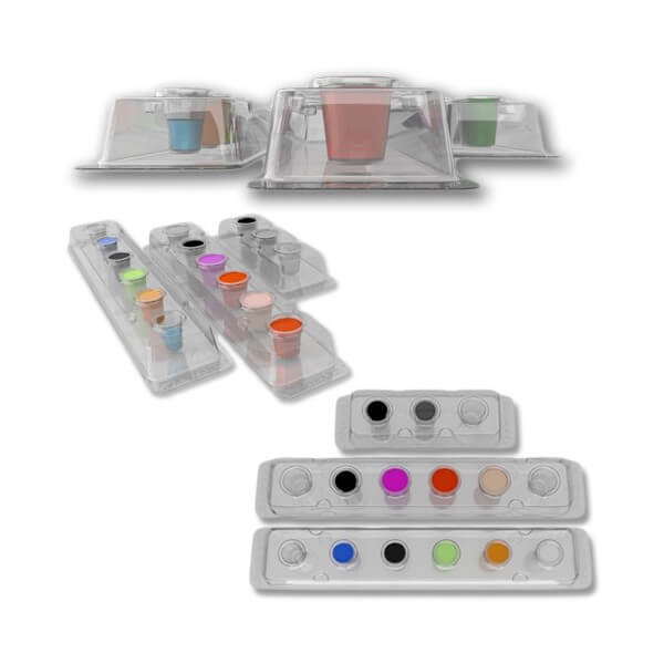 Questi tappini sono una piccola ma creativa ed efficace soluzione un problema che conosciamo bene; Questi tappini che portano il marchio Cheyenne vengono modellati in un singolo pezzo di plastica e, avendo una forma simile a un piccolo vassoio non dovrai più preoccuparti che qualche schizzo di colore misceli accidentalmentegli altri colori. Questa soluzione è molto più sicura dei normali tappini portacolore, facilitano il lavoro e resistono maggiormente agli urti accidentali, conservando comunque tutte i vantaggi dei tappini normali. Sono disponibili in diversi formati tra cui poter scegliere.
