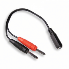 Questo prodotto offre le spina standard da 3.5 mm su un estremità, mentre sull'altra offre un collegamento a banana.