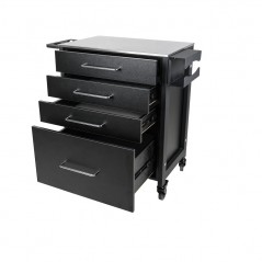 La Tattoo Workstation Basic è un carrello nero robusto e durevole, perfetto per organizzare l'attrezzatura da tatuaggio. Con una solida struttura in acciaio e cassetti in legno MDF con maniglie cromate, offre un aspetto elegante e professionale. Il piano in acciaio inossidabile è facile da pulire, mentre i tre cassetti piccoli e il grande armadio offrono ampio spazio per attrezzature e accessori. Le ruote in gomma con freno garantiscono mobilità e stabilità. Perfetta per una sessione di tatuaggio organizzata e funzionale.