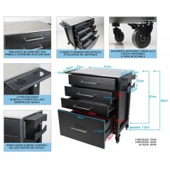 - Superficie di Lavoro Pratica: Il piano superiore in acciaio inossidabile è ideale per posizionare apparecchiature e accessori. È facilmente lavabile, garantendo un'igiene ottimale durante le sessioni di lavoro.